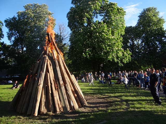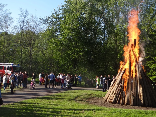 Am Vorabend wird hier bei uns traditionell gemeinsam der Mai begrüßt. So gegen 19 Uhr entzündet die Freiwillige Feuerwehr auf dem Festplatz im Kiliani-Park das Feuer.