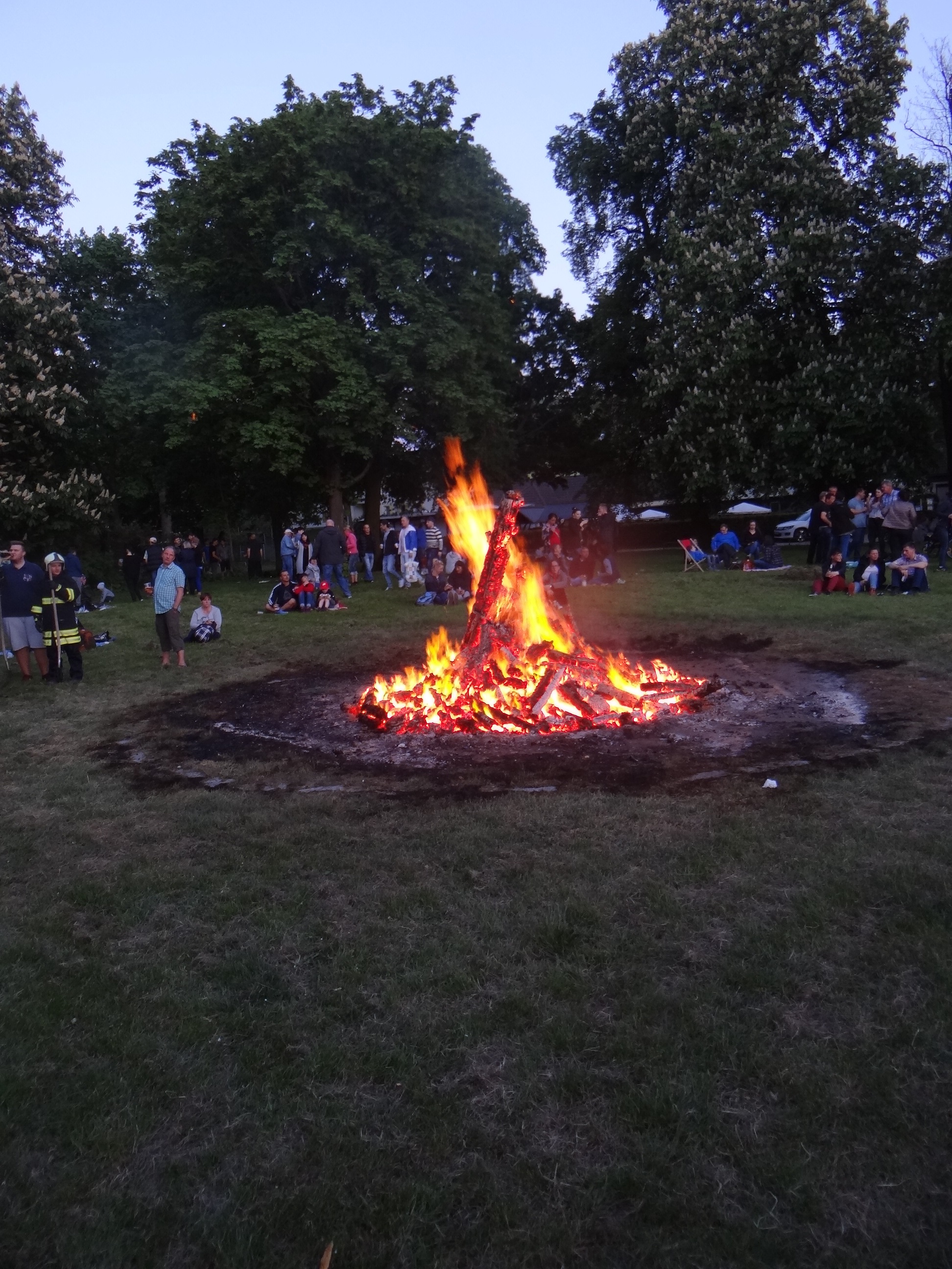 Gispersleben hat den Mai begrüßt. Mit einem lodernden Feuer (unter Regie der Feuerwehr), mit guter Laune und mit Zusammensein auf dem Festplatz im Park.