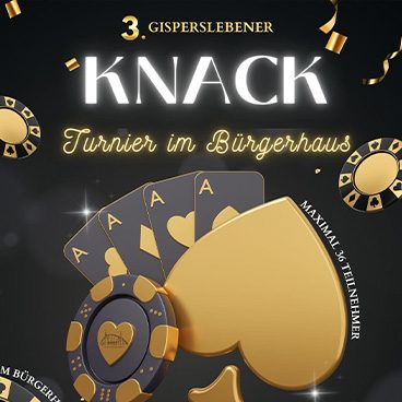 Das dritte Gisperslebener Knackturnier. Mit einer Startgebühr von 15 € kannst Du dabei sein. Anmeldungen sind ab 18 Jahren über info@gispiev.de möglich.
